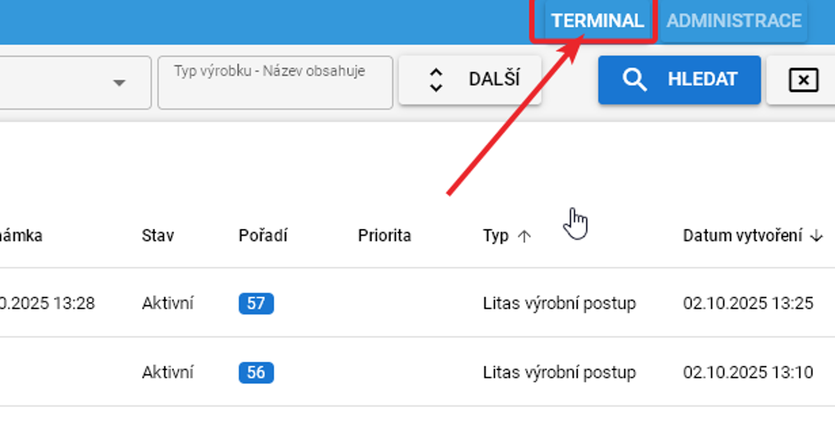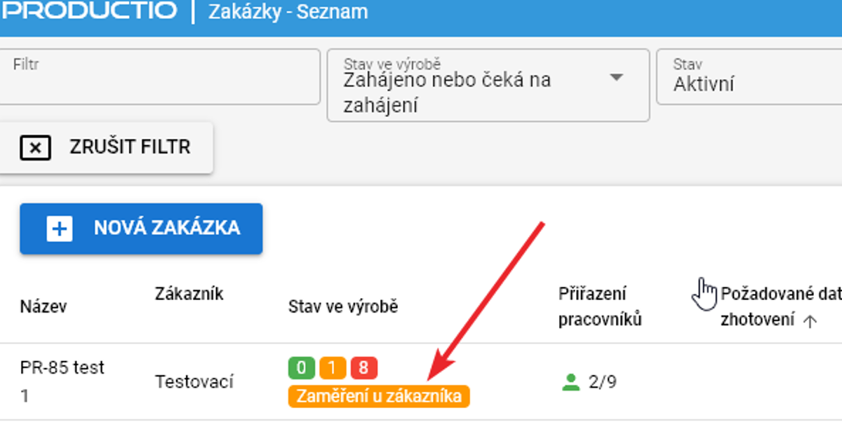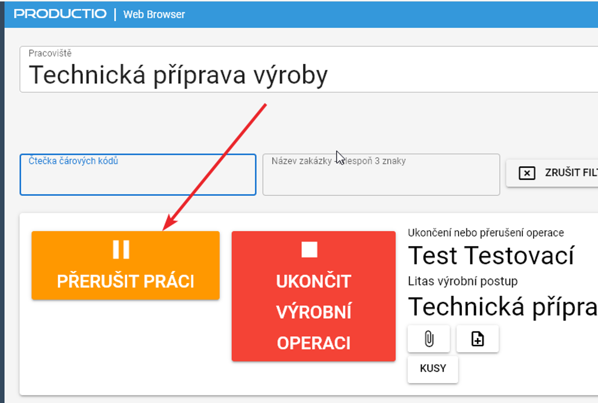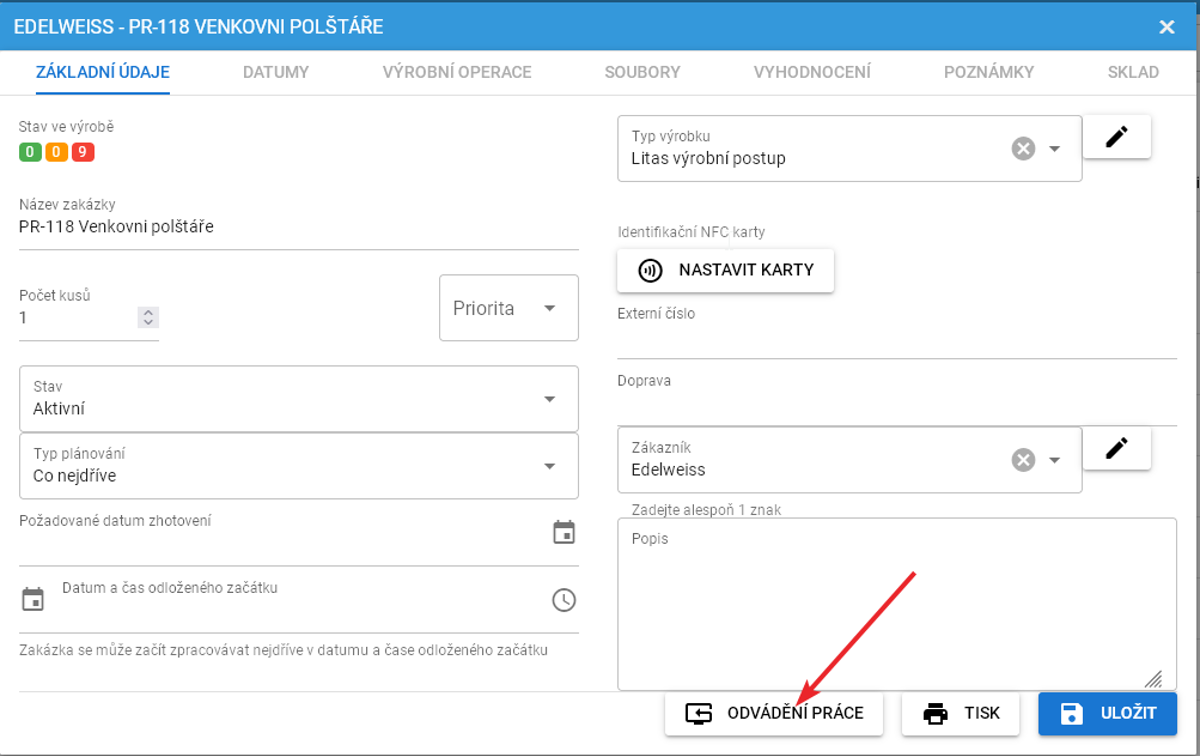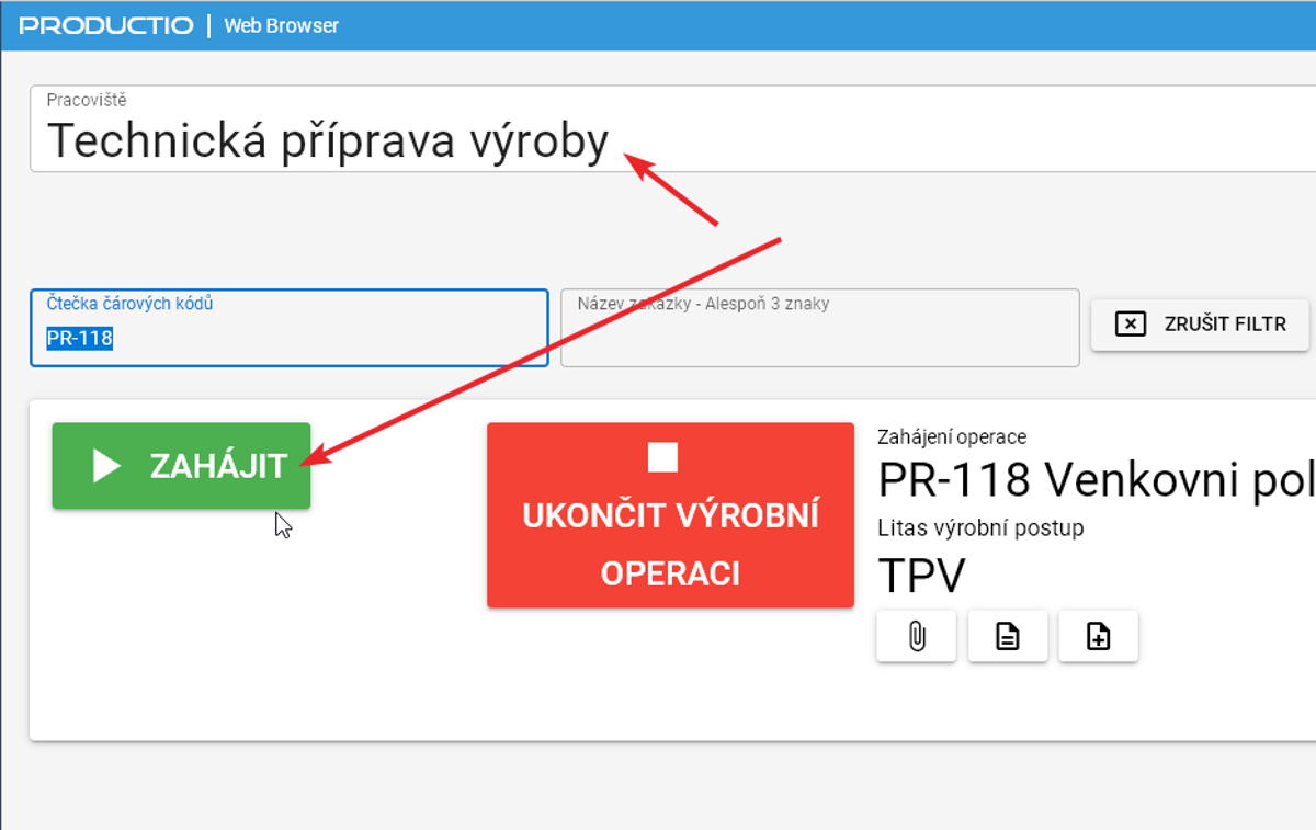 Zahájení a ukončení práce se projeví na zobrazení stavu ve výrobě